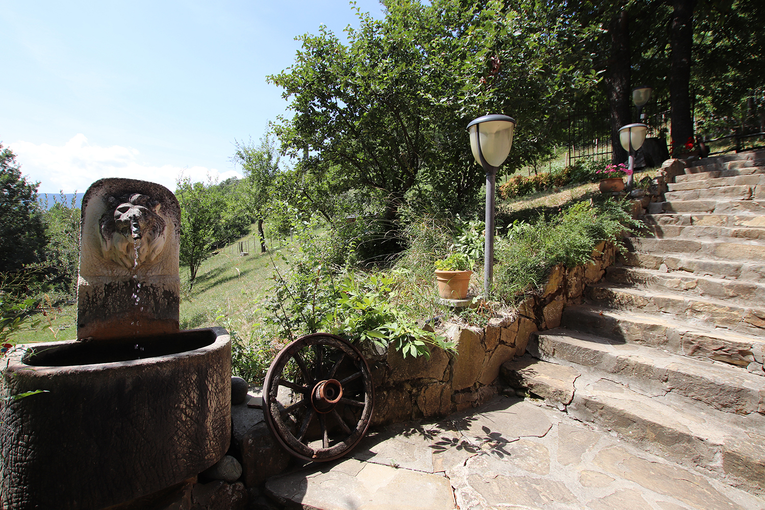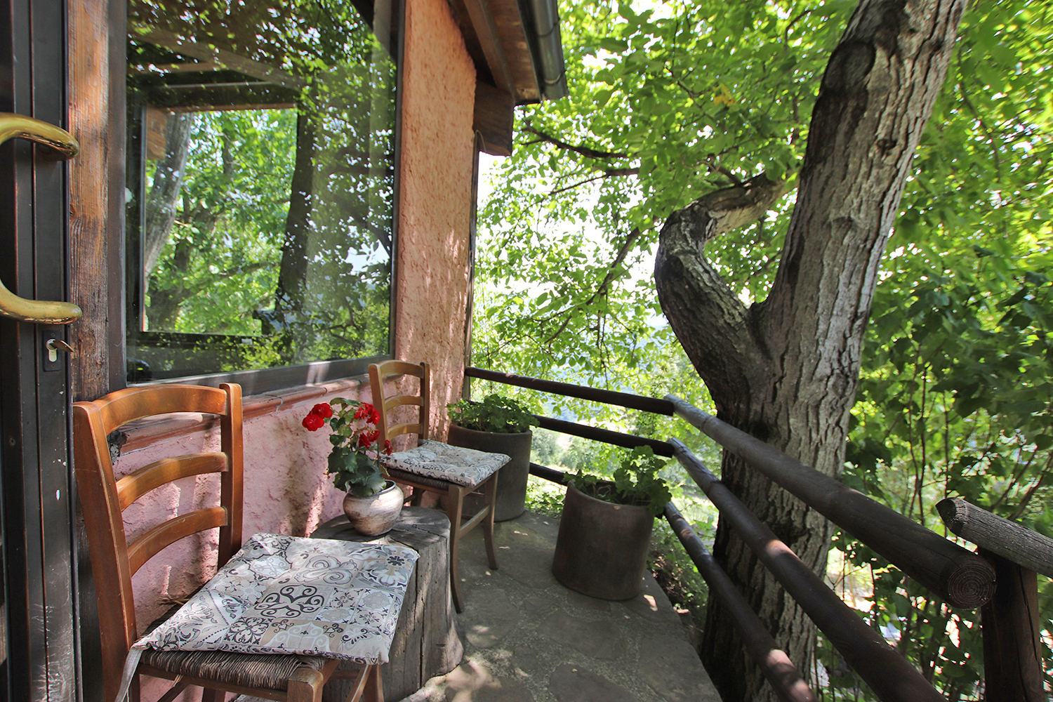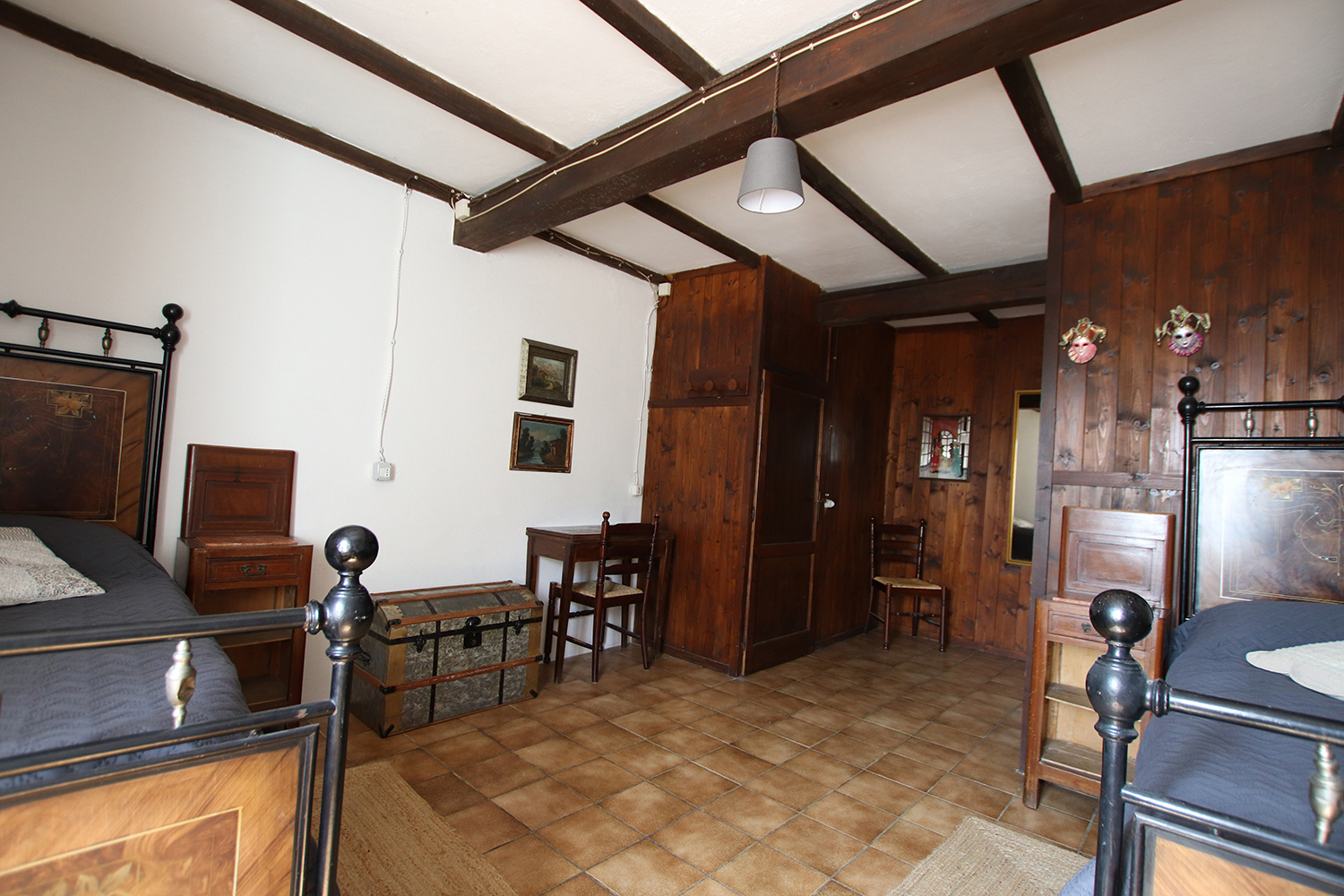 On the upper floors there are a total of four double rooms, all with genuine and rustic details preserved. All bedrooms have an en-suite bathroom and floor-to-ceiling windows facing the garden and overlooking the valley.