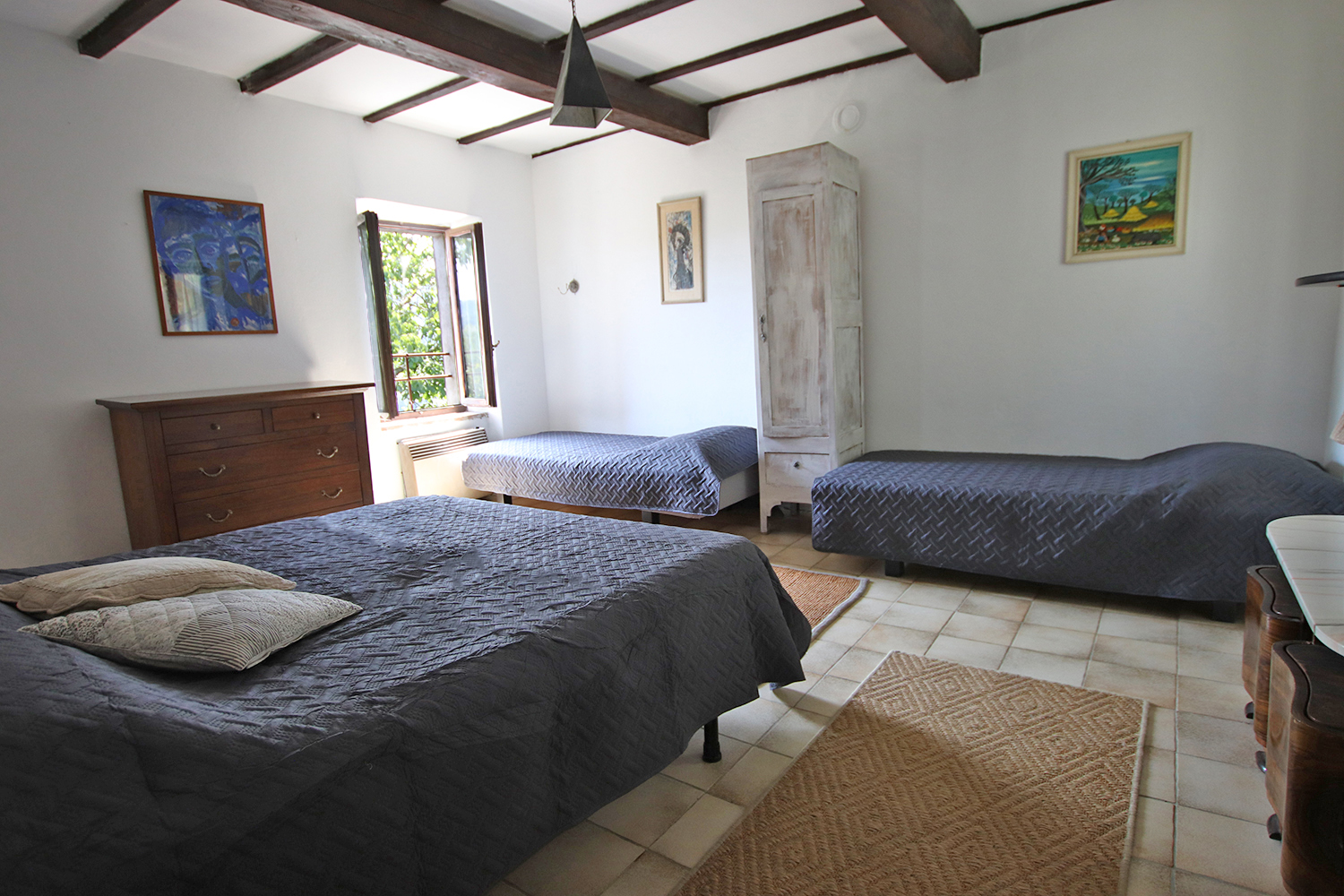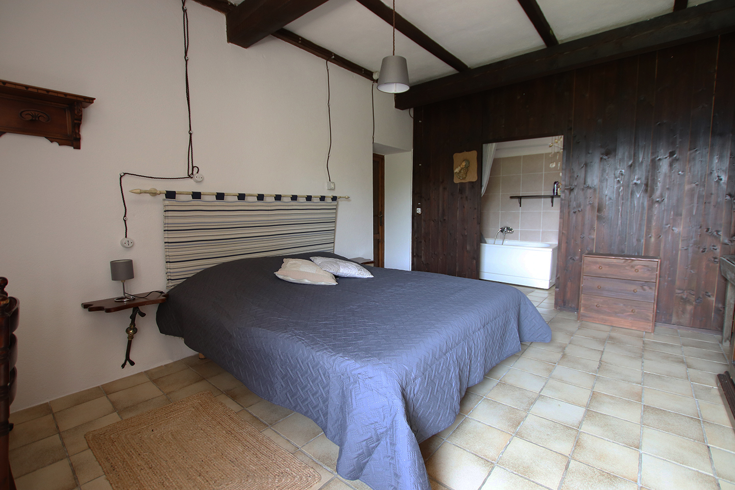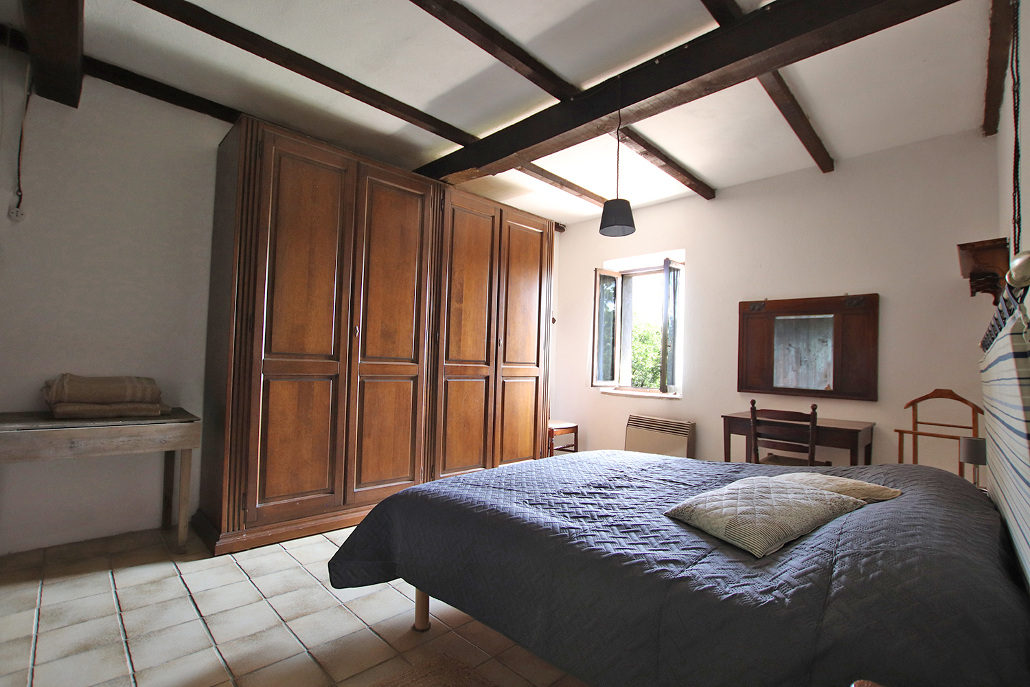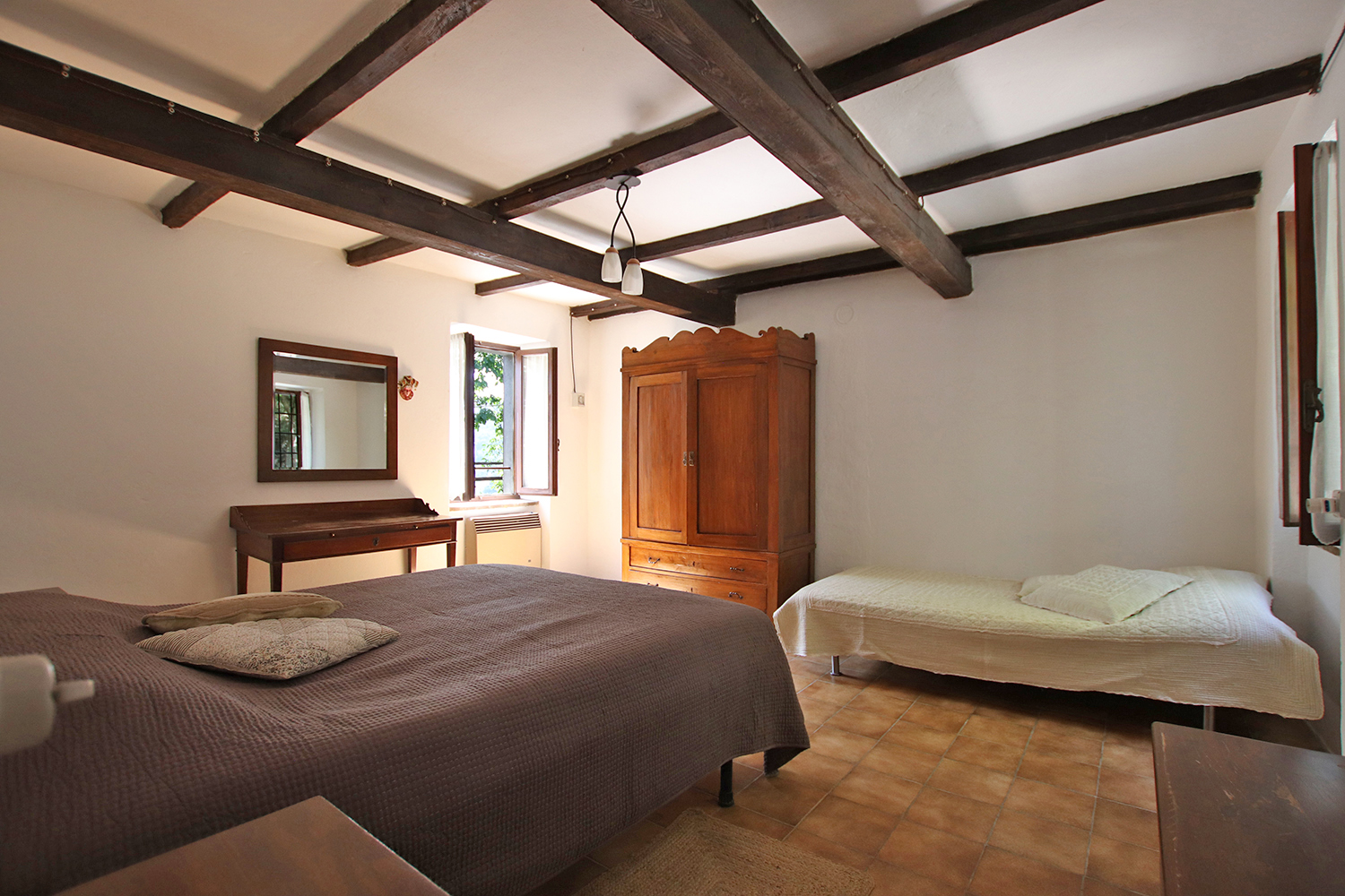 On the upper floors there are a total of four double rooms, all with genuine and rustic details preserved. All bedrooms have an en-suite bathroom and floor-to-ceiling windows facing the garden and overlooking the valley.