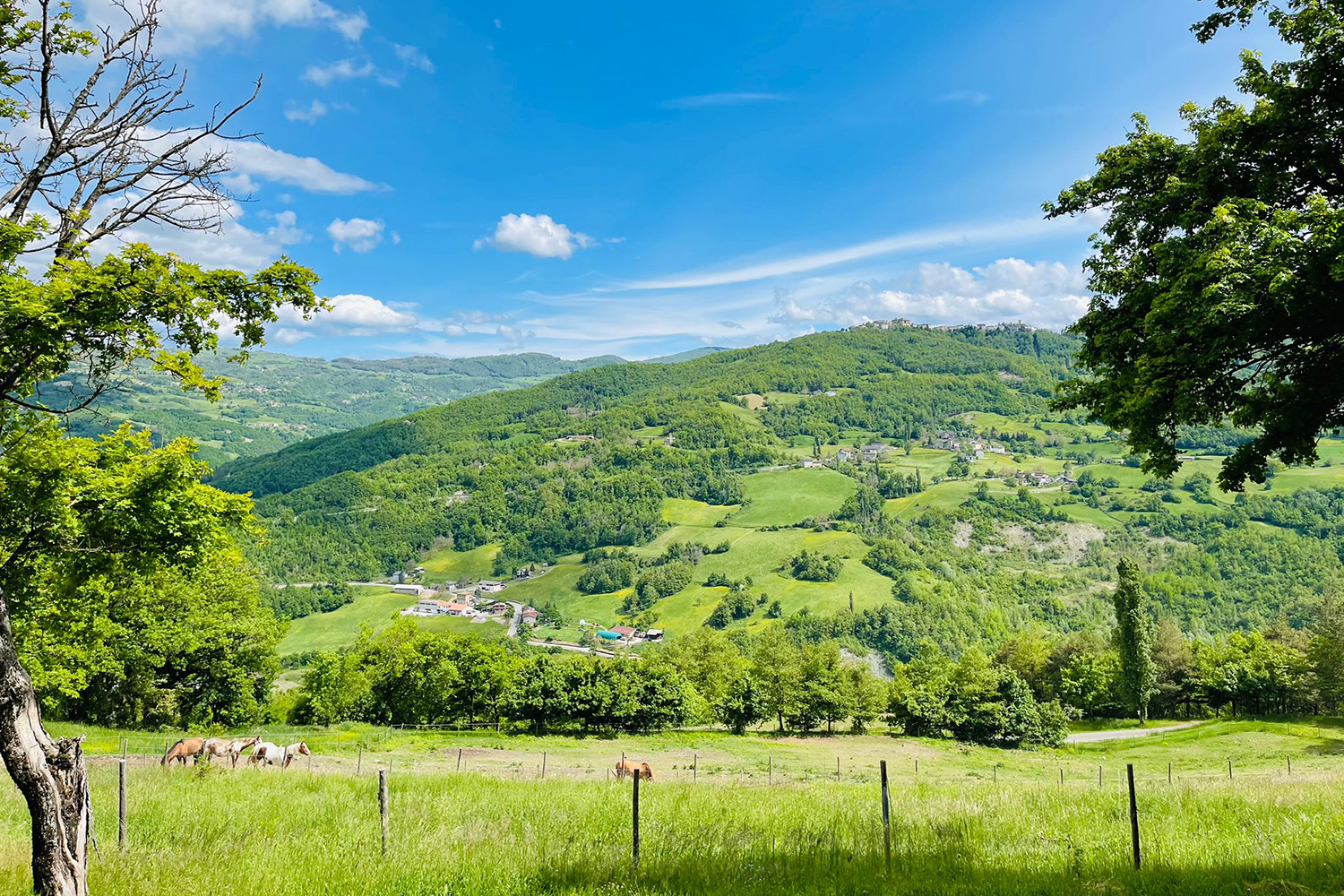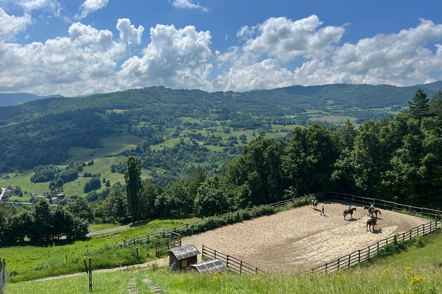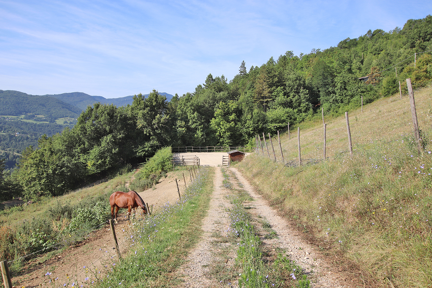 At an altitude of 550 meters on the northern side of the Apennine mountain range, we find this charming horse farm with 12 hectares of land. A very successful agriturismo (Oak Wood Ranch) has been run on the farm since 2017 and the business consists of horses, sheep and chickens as well as own crops.