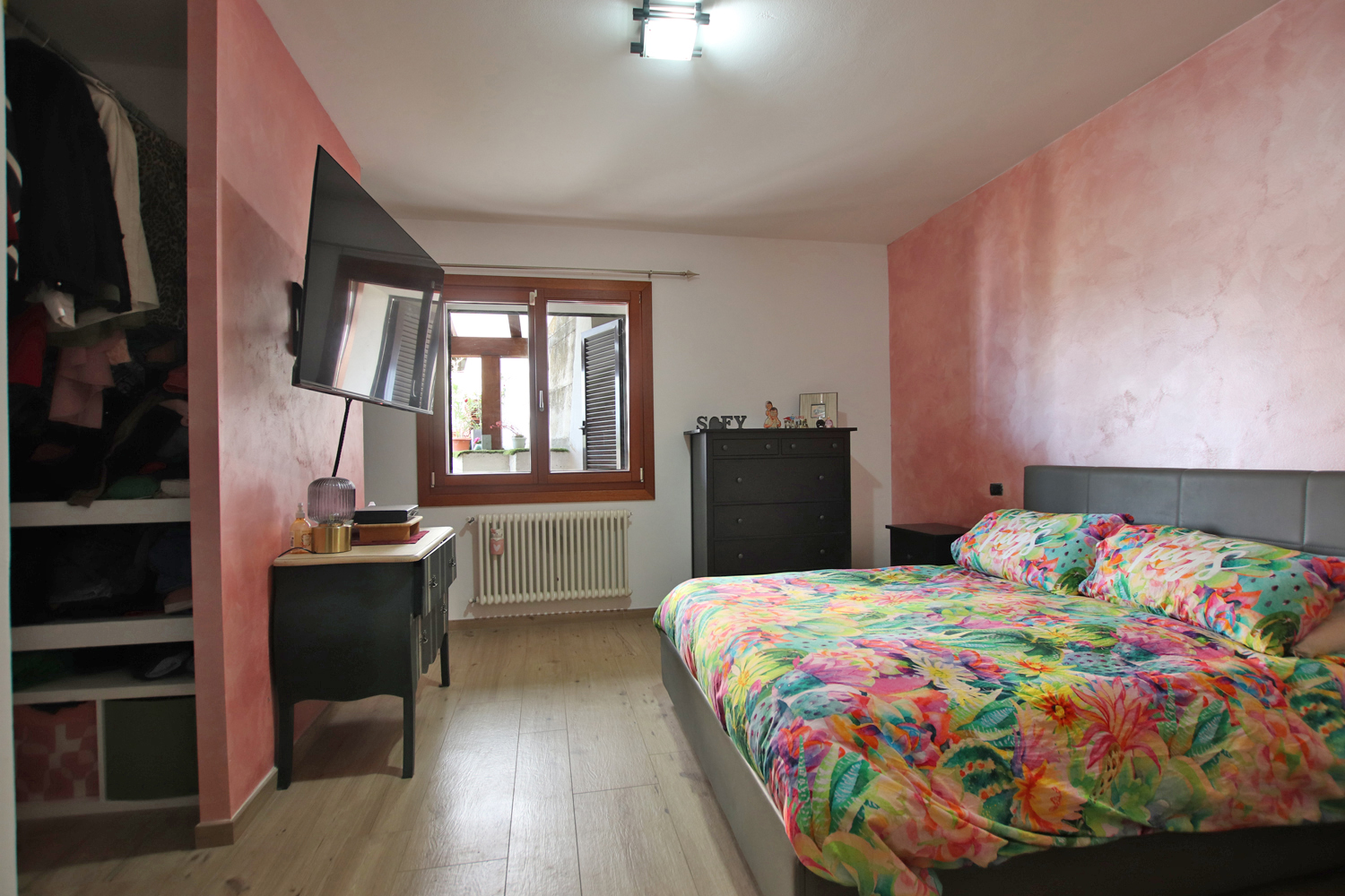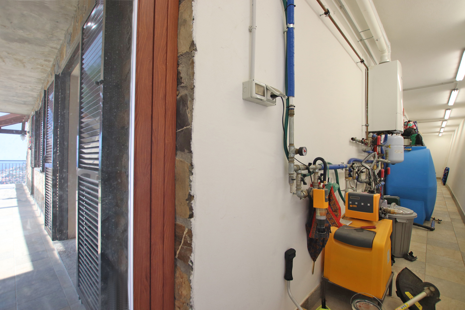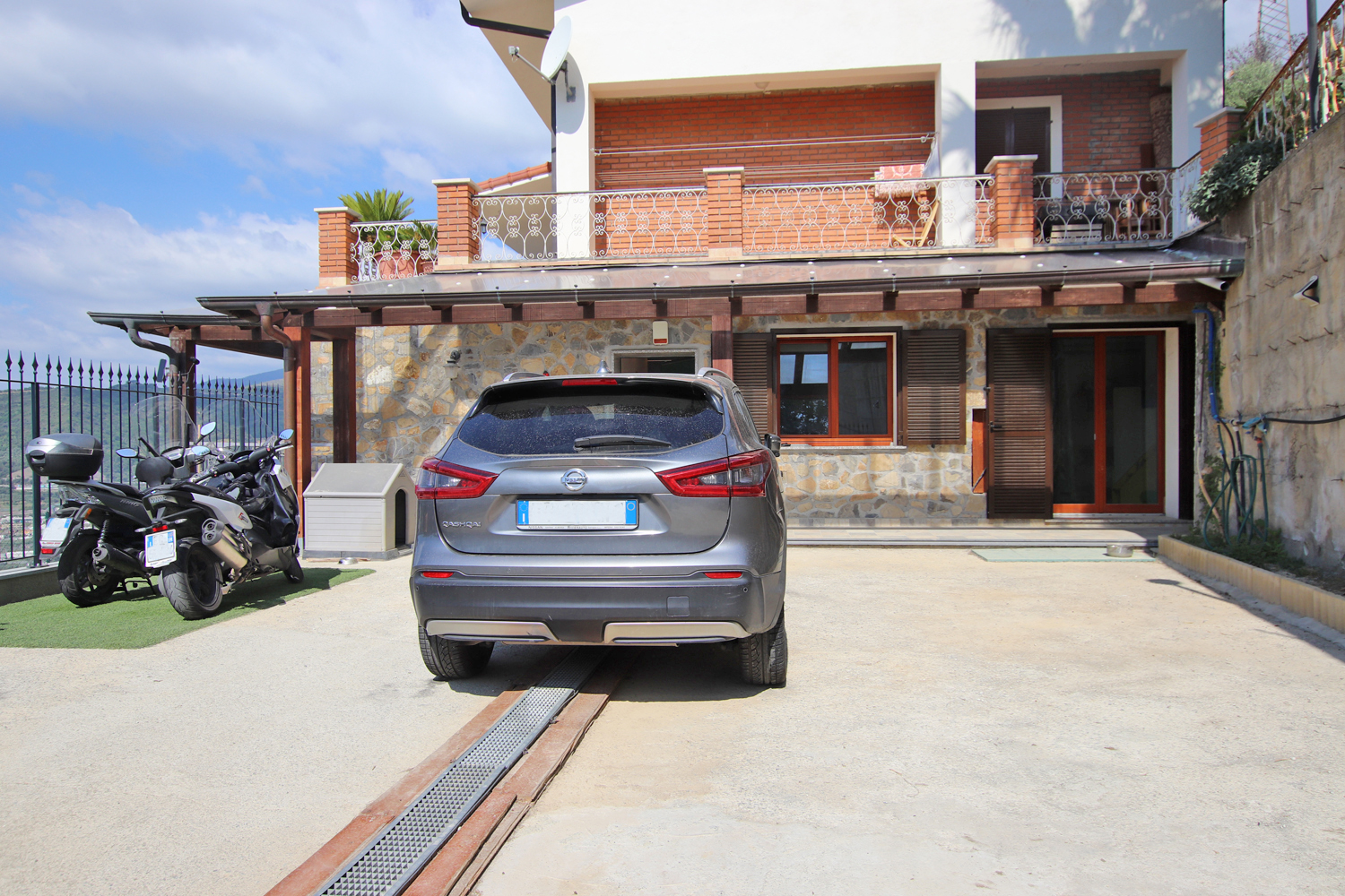 Outside, a covered terrace provides the ideal setting for relaxing summer evenings, overlooking a private plot of approximately 1,800 sqm. The property also includes a large parking area with space for up to three cars.