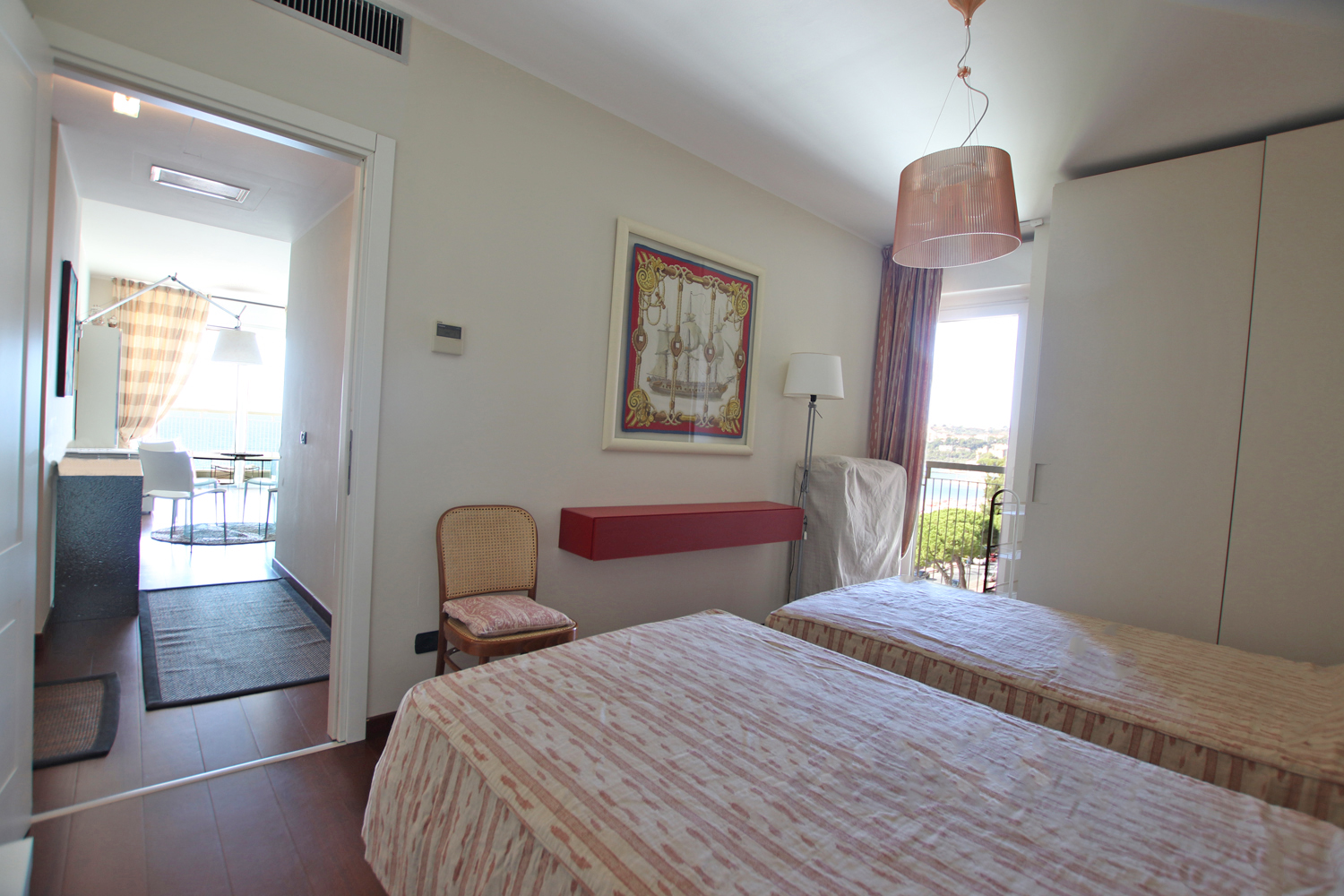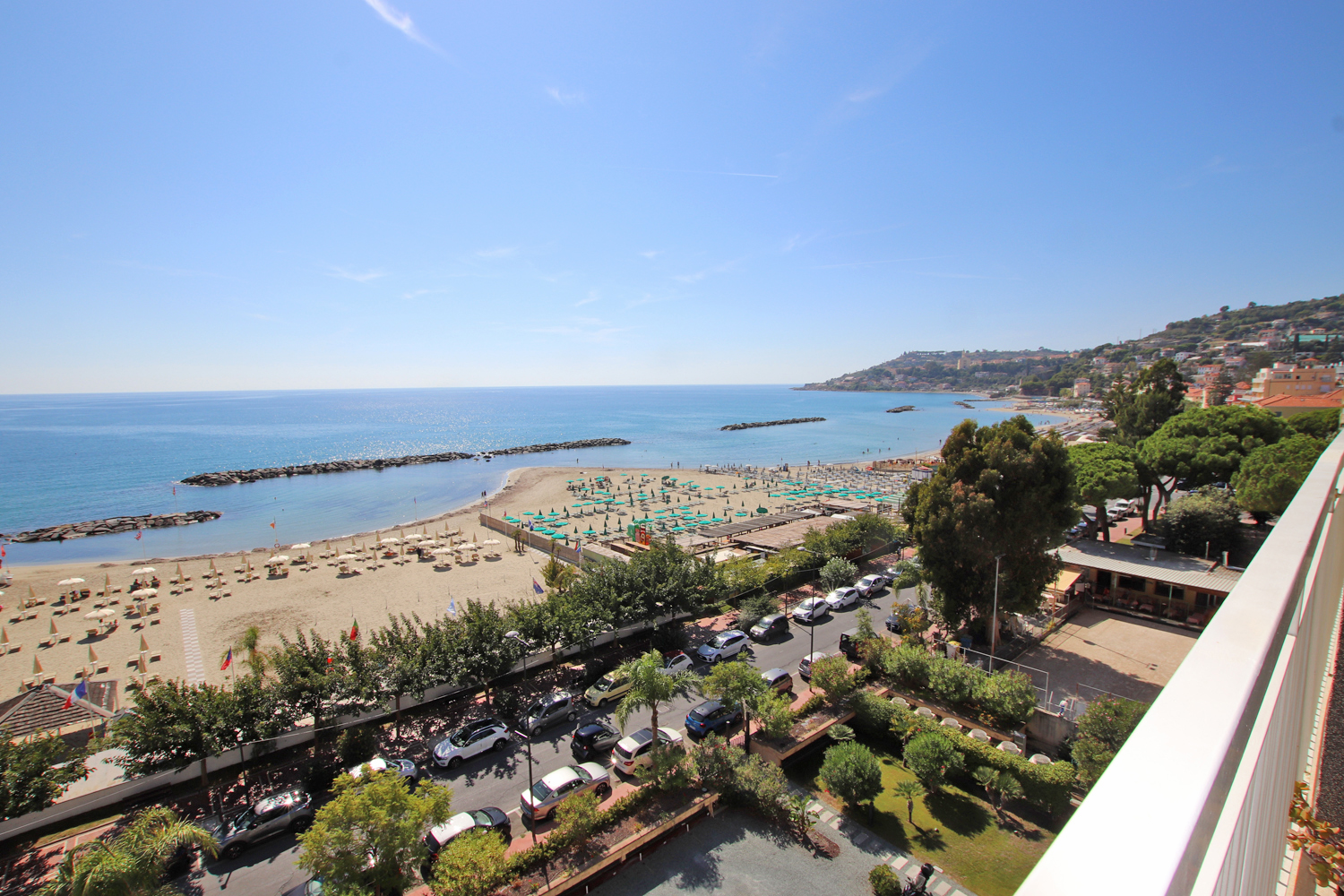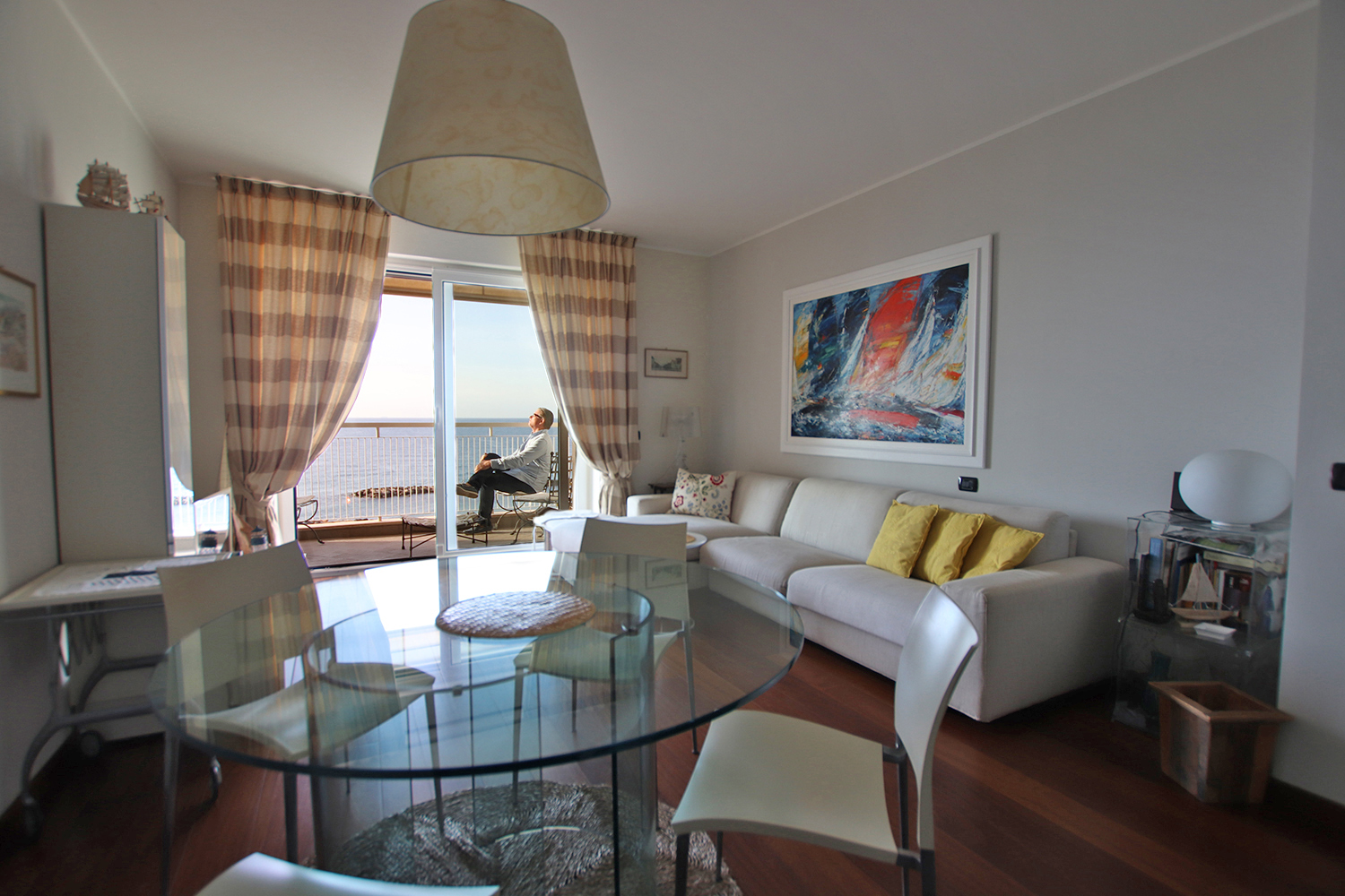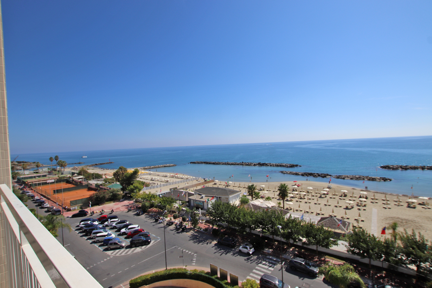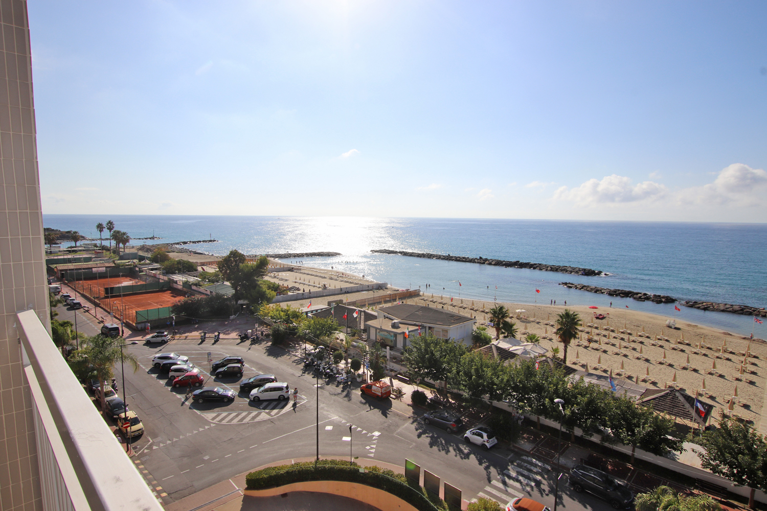 Till salu en underbar lägenhet i ett flott höghus på strandvägen i den populära badorten Arma di Taggia – strax öster om Sanremo! Det är en modern bostad med högklassigt italienskt parkettgolv, moderna fönster och dörrar, alarm, central luftkonditionering och värmepump, elektriska jalusier, markiser och den säljs fullt möblerad.