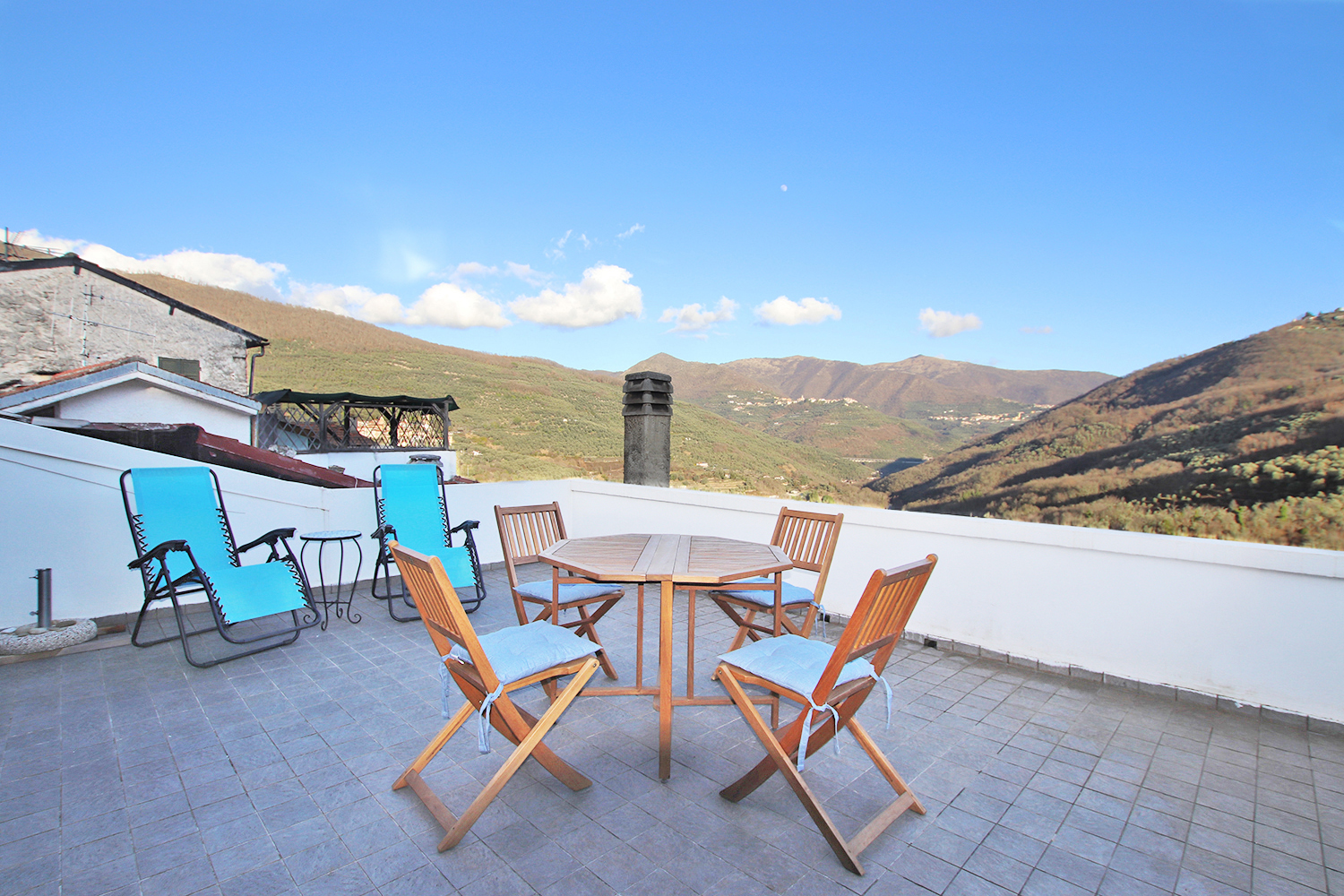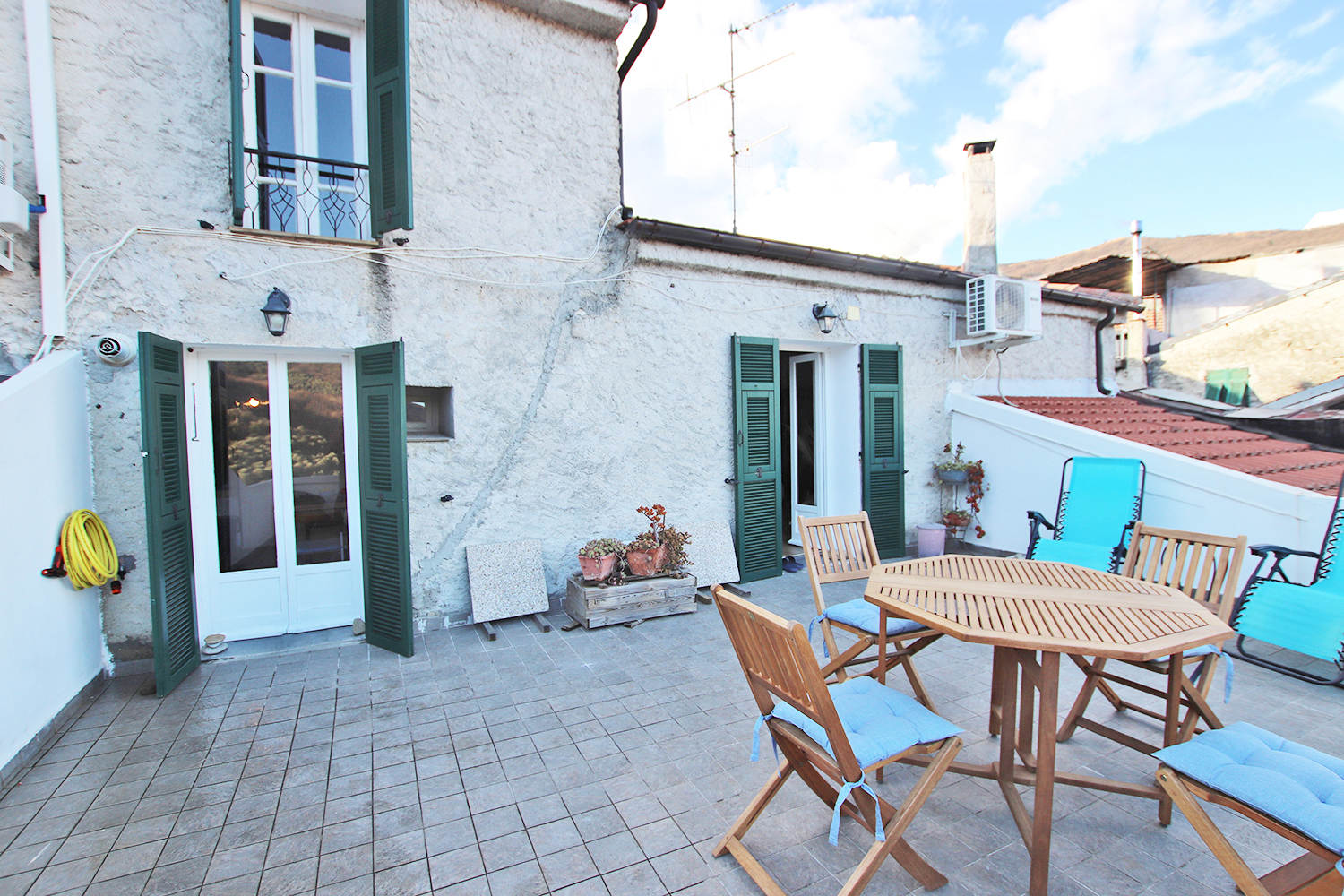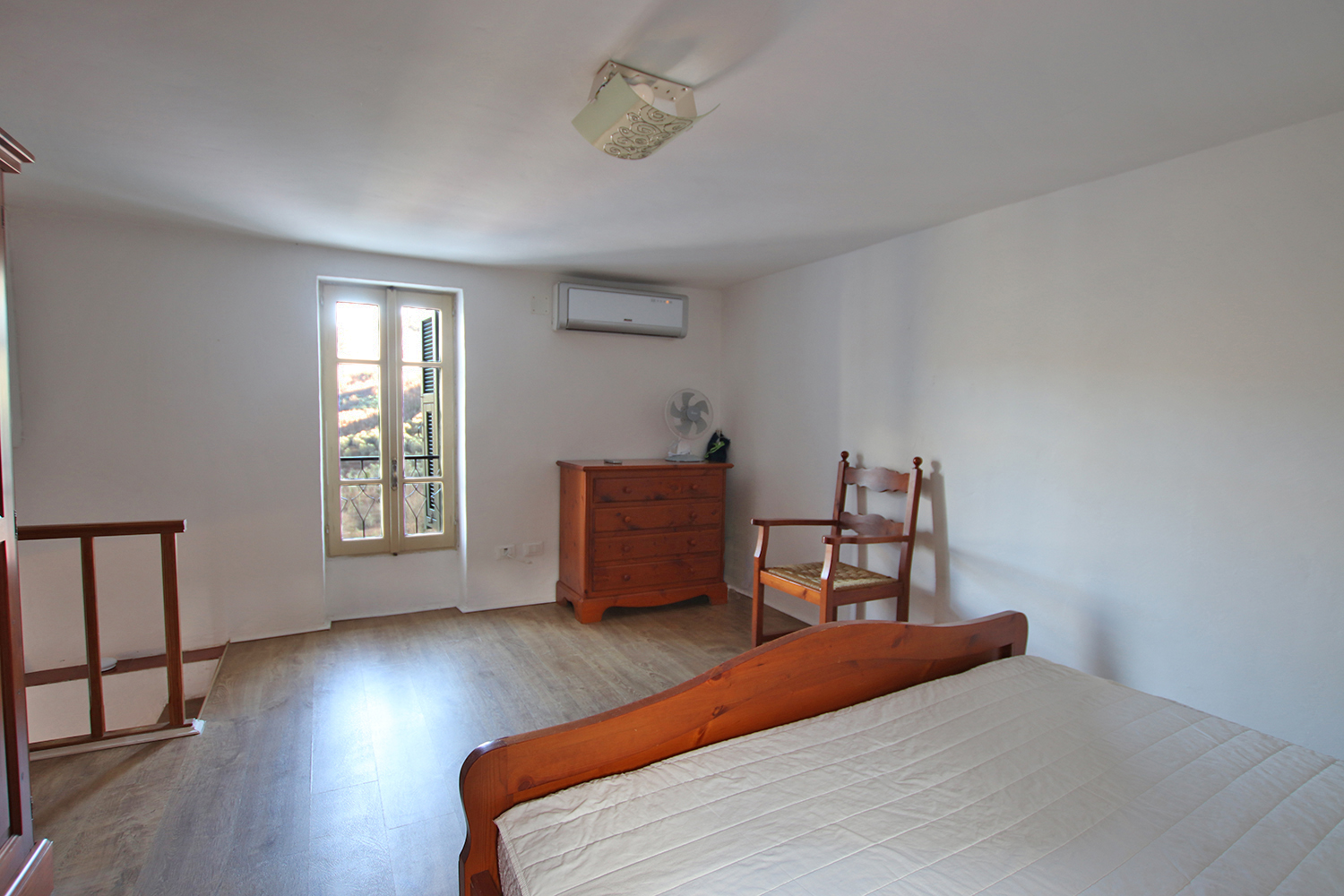 Till salu i byn Maro Castello en mysig duplexlägenhet med stor terrass och panoramautsikt över Maro-dalen samt Alperna. Huset är uppdelat i tre våningar och säljs fullt möblerat och utrustat. På gränden Via Nino Bixio har bostaden sin egna entré till trapphuset. Första våningen består av ett stort vardagsrum, kök, badrum, hall och ca 30 kvm terrass. På översta våningen finns det ett rymligt sovrum. Bostaden säljs fullt möblerad och utrustad med luftkonditionering och värmepump plus en pelletskamin i vardagsrummet. 40 meter från allmän parkering.